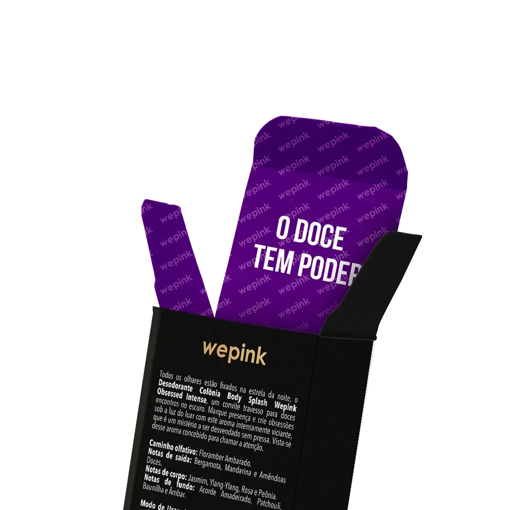 Todos os olhares estão fixados na estrela da noite, o Desodorante Colônia Body Splash Wepink Obsessed Intense, um convite travesso para doces encontros no escuro. Marque presença e crie obsessões sob a luz do luar com este aroma intensamente viciante, que é um mistério a ser desvendado sem pressa. Vista-se esse aroma concebido para chamar a atenção.